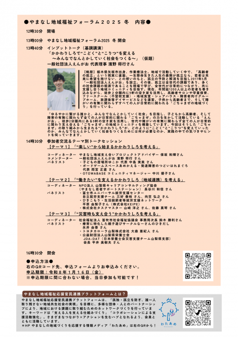 現場の取り組みを支え合う官民連携の場である「やまなし地域福祉応援官民連携プラットフォーム」の